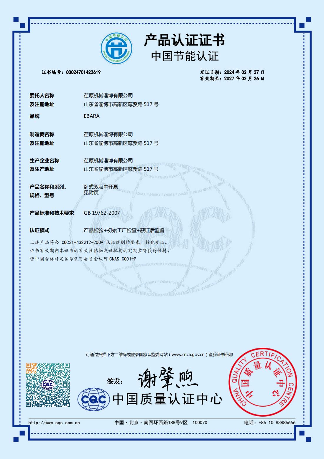 • 中國節能產品認證證書