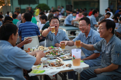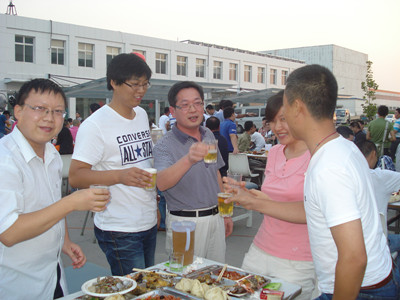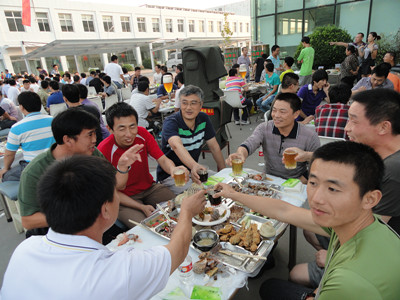 17:30分, “第四屆員工納涼晚會(huì)”正式開始。首先是員工聚餐。近400名員工,伴著歡快的樂曲聲,推杯換盞,大快朵頤。公司總經(jīng)理志賀進(jìn)、常務(wù)副總經(jīng)理王正軍等公司領(lǐng)導(dǎo)走入員工中,與員工們親切交談,敬酒祝愿,整個(gè)會(huì)場(chǎng)洋溢著一張張歡樂的笑臉。