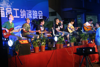 18:30分,晚會(huì)節(jié)目正式開始,首先在晨曦樂隊(duì)激情飛揚(yáng)的搖滾歌曲聲中拉開了晚會(huì)的序幕。晚會(huì)節(jié)目有獨(dú)唱、小合唱、舞蹈等等,演員們的精彩表演,博得了員工們陣陣掌聲和喝彩。特別是生產(chǎn)部門女職工排練的舞蹈,動(dòng)感十足,展示了女員工的多姿多彩的精神風(fēng)貌。常務(wù)副總經(jīng)理王正軍的一曲豪邁的《紅旗飄飄》,抒發(fā)了荏原博泵員工的愛國(guó)情懷;北京事務(wù)所的王信東部長(zhǎng)帶來了抒情歌曲《別問》;王虹權(quán)、袁磊、趙喜鵬、周新菊、肖旭、竇群、蔣祺、張雷雷、徐道義、董旭光等員工先后表演了自己準(zhǔn)備的節(jié)目;職工子女表演的拉丁舞更是把晚會(huì)的氣氛推向高潮。