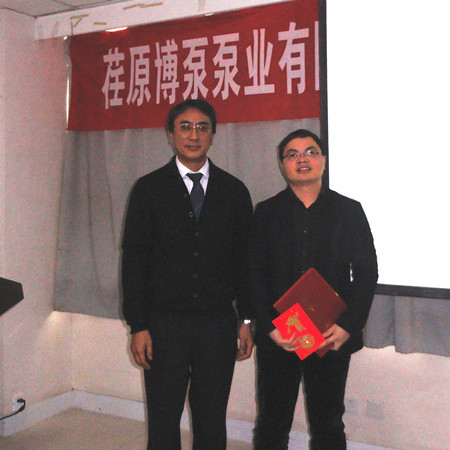 最后,對2012年度優(yōu)秀業(yè)務(wù)員――高文旭、優(yōu)秀技術(shù)工程師――夏紅軍進行了表彰,總經(jīng)理志賀進先生親自為他們頒發(fā)了證書及獎金。